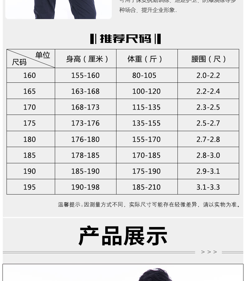 加厚防寒服保安冬作訓服尺碼表
